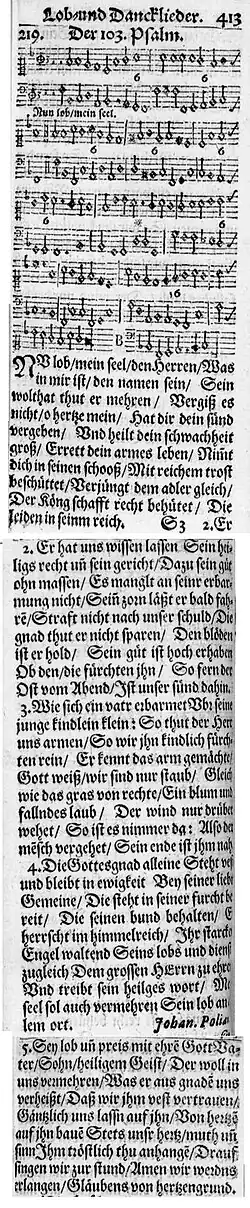 - ^ "Nun lob, mein Seel, den Herren". hymnary.org. Retrieved 27 December 2013.