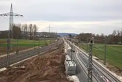 The planning began in 1991 and construction started in April 1996.[3] Three years later construction was stopped by the new SPD-Green coalition government formed after the 1998 election[4] and only recommenced in 2002. The new line was opened at the timetable change on 10 December 2017.[5] The timing of the final commissioning of the upgraded section is still uncertain.[6]