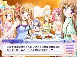 The player assumes the role of Shizuma Hasekura (支倉 静真, Hasekura Shizuma), a sensible teenager who, while his parents are working overseas,[4] is visiting his energetic childhood friend Makina Tomoe (巴 真紀奈, Tomoe Makina; voiced by Mahiru Kaneda). She is talented at sports such as Sophilos,[5] although her grades are suffering. Makina has an older twin sister called Yukina Tomoe (巴 真紀奈, Tomoe Yukina; voiced by Yuki Matsunaga), who is more mature than Makina. She enjoys gardening, and is skilled at cooking.[5]