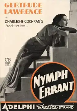 Nymph Errant is a musical with music and lyrics by Cole Porter and book by Romney Brent based upon the novel by James Laver. The somewhat controversial story concerned a young English lady intent upon losing her virginity. Porter considered the score his best because of its worldliness and sexual sophistication.[1] The musical was produced in London in 1933 and received its US premiere in 1982.