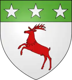 The O’Dohertys are named after Dochartach (fl. 10th century), a member of the Cenél Conaill dynasty which in medieval Irish genealogy traced itself to Niall of the Nine Hostages (see Uí Néill).[3] Their coat of arms is a gules rampant stag in an argent field, vert chief with three stars. The clan motto is Ár nDuthchas (English: Our heritage).