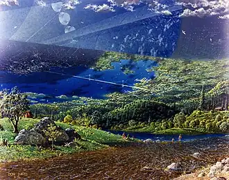 Artist's depiction of the interior of an O'Neill cylinder, illuminated by reflected sunlight