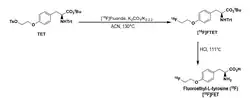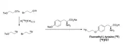 - ^ a b Bourdier T, Greguric I, Roselt P, Jackson T, Faragalla J, Katsifis A (July 2011). "Fully automated one-pot radiosynthesis of O-(2-[18F]fluoroethyl)-L-tyrosine on the TracerLab FX(FN) module". Nuclear Medicine and Biology. 38 (5): 645–651. doi:10.1016/j.nucmedbio.2011.01.001. PMID 21718939.