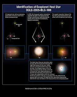 1. ^ Batista, V.; et al. (July 30, 2015). "CONFIRMATION OF THE OGLE-2005-BLG-169 PLANET SIGNATURE AND ITS CHARACTERISTICS WITH LENS–SOURCE PROPER MOTION DETECTION". The Astrophysical Journal. 808 (2): 170. arXiv:1507.08914. Bibcode:2015ApJ...808..170B. doi:10.1088/0004-637X/808/2/170. S2CID 119212954.