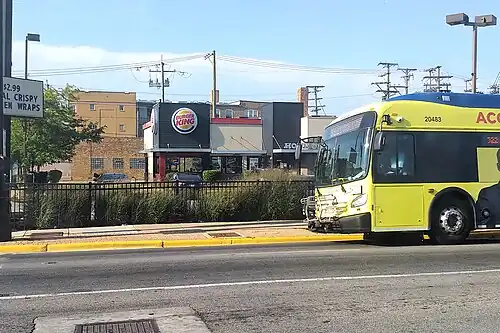 ![]() The location of the station, in between the small brick building behind the Burger King and the larger brick building behind it, in 2023 | |||||||||||