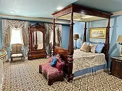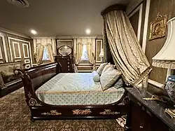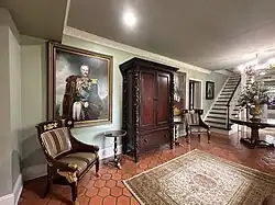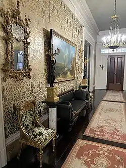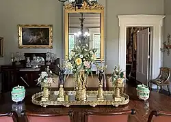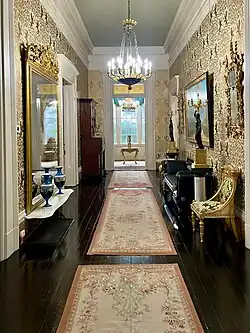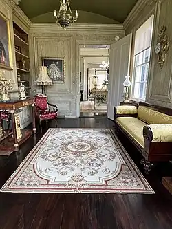 Oakland was built by Horatio Sprague Eustis (1811 - 1858) as a wedding gift for his wife Catherine Chotard (1820 - 1877) in 1840. The land (22.5 acres) had been part of her wedding dowry from her father Major Henry Chotard (1987 - 1870) in 1838. [2] It was built in the Greek Revival style[2] and consisted of the main house and two large outbuildings (only one of which survives) forming a “U” shape compound with a long alley of majestic Oaks approaching from the west. After graduating from Harvard in 1830, Mr Eustis had relocated from Rhode Island to Natchez where he practiced law. Miss Chotard was from a prominent Natchez family with her maternal grandfather being the last Spanish Governor of the Natchez territory Stephen Minor (1760-1844) [2] and her father having served as General Andrew Jackson’s aide-de-camp during the Battle of New Orleans in 1815. In 1857 the property was sold to her first cousin John Duncan Minor (grandson of the Spanish territorial governor) and his wife Katherine Surget Minor. Despite Mississippi’s succession during the American Civil War (1861–1865)[2], the Minor’s remained steadfast Unionists and frequently entertained Federal officers following Natchez’s occupation in 1863. This was not well received by many in Natchez and the associated stress led to a decline in Mr Minor’s health leading to his death in 1869 at age 37. Oakland remained in the hands of the Minor family until 1949 when it was sold to Alan W. Granning who subsequently subdivided the property leaving 3 1/2 acres around the residence. The title passes to Lawrence and Kate Don Adams in 1960 after which the house became part of the annual Natchez Pilgrimage. In 2021 the property was purchased by Dr Thomas and Dorie LeMay who undertook a three year complete restoration. Along with the extensive repairs, the LeMay’s furnished the home with period American, French as well as Russian furniture and decorative arts. They continue to upgrade the property and its collections while splitting their time between this and their other Natchez home the LeMay Arrighi mansion.