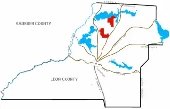 Oaklawn Plantation was located on two tracts of land. The first and northernmost tract would become what is now parts of Killearn Lakes Plantation and the private hunting preserve of Horseshoe Plantation and extending south to Bradfordville. The second and southernmost tract would become properties on Ox Bottom Rd and edge Thomasville Road.