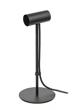 The Rift, or any other device being tracked by the system, is fitted with a series of precisely positioned infrared LEDs under or above the surface, set to blink in a specific pattern. By knowing the configuration of the LEDs on the objects and their pattern, the system can determine the precise position of the device with sub-millimeter accuracy and near-zero latency.[25] The system then includes one or more USB stationary infrared sensors that originally come with a stand in a desk lamp form factor, but standard screw holes allow for the stand to be removed and the sensor to be mounted anywhere the user sees fit. The sensors normally sit on the user's desk, creating a 3D space that allows the user to use the device while sitting, standing, walking, or even jumping around the room.[26]