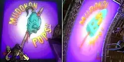 On the left is the original "Mudokon Pops!" packaging in the U.S. and EU versions, with the altered version to the right (as seen in Abe's Exoddus) that was seen in the Japanese version.