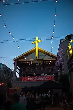 The Yellow Cross bar in SOL Square, utilising the cross from the Odeon Theatre fitted by the Sydenham Assembly of God