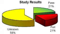 Studies done for the Minerals Management Service have questioned the reliability of shear rams in deep-water drilling. Figure 1 shows the result of a 2002 study on offshore oil rigs. This study was designed to answer the question "Can a given rig's BOP equipment shear the pipe to be used in a given drilling program at the most demanding condition to be expected?"[18] Seven of the fourteen cases in this study opted not to test, another had insufficient data to draw a definitive conclusion, and three failed to shear the pipe under realistic conditions of expected well bore and seawater pressure. In each case of failure, increasing the pressure on the rams above its design value, successfully sheared the pipe.[18] A follow-up study in 2004 confirmed these results with a much larger sample of drill pipes and typical blowout preventers from three different manufacturers.[17]