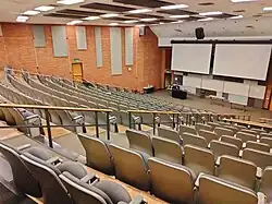 A lecture hall in Morton Hall used for arts and sciences instruction.