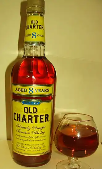 Old Charter is a brand of bourbon whiskey distilled in Frankfort, Kentucky at the Buffalo Trace Distillery, a part of the Sazerac Company.[1][2] The whiskey is no longer aged 8 years, despite the claim on the label that it "is gently matured for eight seasons in century old brick warehouses." In 2018 Sazerac is facing a class action false advertising lawsuit because of the claim on the label.[3]