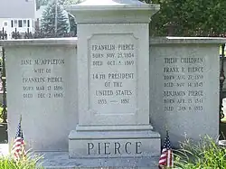 Old North Cemetery is a historic cemetery on North State Street in Concord, New Hampshire. Established in 1730, it is the city's oldest cemetery. Franklin Pierce, fourteenth president of the United States, is buried in the cemetery, as are his wife Jane and two of his three sons. It was listed on the National Register of Historic Places on November 9, 2008.[2][1] The cemetery continues to accept new burials.