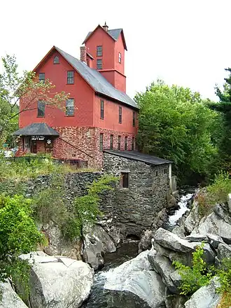 The Old Red Mill and Mill House are a historic 19th-century mill building and residence on Red Mill Drive in Jericho, Vermont. The mill was built in 1856 and enlarged later in the 19th century, accommodating then state-of-the art grain rollers, and was a prominent local business. The house was built in 1859, and is a good local example of Gothic Revival architecture. The mill is now a museum property of the local Jericho Historical Society. The mill building was listed on the National Register of Historic Places in 1972; the listing was expanded to include the house in 1976.[2]