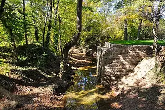 The Old Town Bridge in Franklin, Tennessee was a "frame bridge across Brown Creek near its junction with the Big Harpeth River."[2]: 46 It was built by U.S. soldiers in 1801. It carried the Harpeth River branch of the Natchez Trace over Brown's Creek. The bridge was rebuilt several times subsequently, but was dismantled some time before 1988. Only the limestone abutments remained when the site was surveyed in 1988.[2]: 46