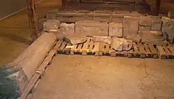 As early as 1312 a half-timbered Town Hall (German: Altes Rathaus) had been built on the market square in Halle (Saale) on the Saale River, east-central Germany. In 1466 a stone building was constructed. Later on the Town Hall was subject to several transformations. The architect Nickel Hoffmann added Renaissance features to the Gothic architecture style building. The south wing of the Town Hall, dating from the 16th century, was substituted by the Baroque wing in 1702, decorated by a grand entrance portal. On 31 March 1945 an air raid damaged parts of Halle (Saale)’s Old Town Hall and of the Old Weighing House (German: Alte Waage or Ratswaage). These buildings with their variety of architectural styles were demolished. The site of the Old Town Hall is now an unbuilt area with the foundation walls beneath.[1]