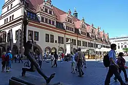 The Old Town Hall (German: Altes Rathaus), which dominates the east side of the Markt square in Leipzig's district Mitte, is considered one of Germany's most important secular Renaissance buildings. At the rear is the Naschmarkt (Sweet market). The mayor and the municipal administration have been housed in the New Town Hall since 1905.