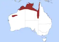 L. olivaceus is found in Western Australia, the Northern Territory, and Queensland. The type locality given is "North Australia; Port Essington" (Northern Territory, Australia).[1]