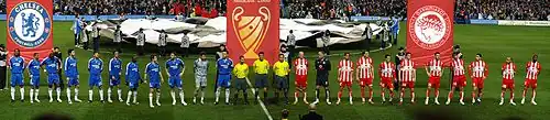 In the 2007–08 UEFA Champions League, Olympiacos had an exceptional European campaign. Drawn in one of the toughest groups of the tournament along with Real Madrid, Werder Bremen and Lazio, Olympiacos finished second with eleven points, the same with group-winners Real Madrid, with the Spanish club taking the top place due to the better results in the two Olympiacos–Real Madrid matches. Following a draw 1–1 to Lazio at home, Olympiacos grabbed a spectacular 3–1 away win against Werder Bremen in Weserstadion, turning the game around from 0–1. In the third game, Olympiacos were finally defeated 4–2 to Real Madrid at the Santiago Bernabéu Stadium, after a heart-breaking match in which the Greek team was playing with 10 men from the 13th minute and was leading the score to the 68th with 2–1, turning it around from 0–1 and wasting a lot of chances to score more. Real Madrid scored their third goal in the 83rd, but Olympiacos came close to score many times during the last minutes of the match and leave Madrid with the draw, when Real secured the win with a last-minute goal, following an outstanding Olympiacos chance to equalise the score, with Iker Casillas saving Darko Kovačević's powerful header from close. Olympiacos opened the second round of the group stage with a draw 0–0 to Real Madrid at the Karaiskakis Stadium and kept alive the record of being undefeated by Real Madrid in Athens in four matches, while the Reds moved a step closer to qualifying for the Last 16 after coming from behind to defeat Lazio 2–1 in Stadio Olimpico. On 11 December, Olympiacos smashed Werder Bremen 3–0 at Karaiskakis Stadium, which ensured their place in the knockout stage of the tournament, where they faced Chelsea. At the first match in Piraeus, the Reds had a scoreless draw against the Blues, but were eliminated in the second leg at the Stamford Bridge after their 3–0 loss.[18]