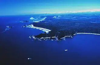 The Olympic Coast National Marine Sanctuary is one of 15 marine sanctuaries administered by the National Oceanic and Atmospheric Administration (NOAA), an agency of the U.S. Department of Commerce. Designated on May 11, 1994,[2] the sanctuary encompasses 3,189 square miles (2,408 sq nmi; 8,259 km2) of the Pacific Ocean along the Olympic Peninsula of Washington state, from Cape Flattery in the north to the mouth of the Copalis River, a distance of about 162.5 miles (261.5 km).[1] Extending 25 to 40 miles (22 to 35 nmi; 40 to 64 km) from the shore, it includes most of the continental shelf, as well as parts of three important submarine canyons, the Nitinat Canyon, the Quinault Canyon, and the Juan de Fuca Canyon. For 64 miles (103 km) along the coast, the sanctuary shares stewardship with the Olympic National Park.[1] Sanctuary stewardship is also shared with the Hoh, Quileute, and Makah Tribes, as well as the Quinault Indian Nation.[3] The sanctuary overlays the Flattery Rocks, Quillayute Needles, and Copalis Rock National Wildlife Refuges.[4]