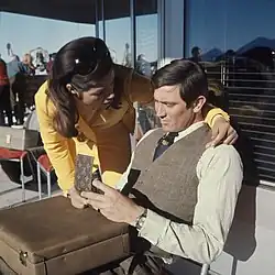 For Tracy Draco, the producers wanted an established actress opposite neophyte Lazenby.[30] Brigitte Bardot was invited, but after she signed to appear in Shalako opposite Sean Connery, the deal fell through,[15] and Diana Rigg—who had already been the popular heroine Emma Peel in The Avengers—was cast instead.[7] Rigg said one of the reasons for accepting the role was that she always wanted to be in an epic film.[17] Hunt and Maibaum admired Donald Pleasence's performance as Blofeld in You Only Live Twice but wanted to recast the character. Maibaum originally wrote the role of Blofeld with Max von Sydow in mind;[31] coincidentally, von Sydow later played Blofeld in the non-Eon Bond film Never Say Never Again. Telly Savalas was ultimately cast following a suggestion from Broccoli. Hunt's neighbour George Baker was offered the part of Sir Hilary Bray. Baker's voice was also used when Lazenby was impersonating Bray,[17] as Hunt considered Lazenby's imitation not convincing enough.[32] Gabriele Ferzetti was cast as Draco after the producers saw him in We Still Kill the Old Way, but Ferzetti's heavy Italian accent also led to his voice being redubbed by English actor David de Keyser for the final cut.[25]