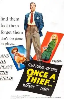 Once a Thief is a 1950 American crime film noir directed by W. Lee Wilder starring Cesar Romero, June Havoc, Marie McDonald and Lon Chaney Jr.[1]