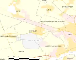 Carpiquet airfield was on a 1.2 mi (1.9 km) expanse of level ground, which offered a "killing ground" for the defenders.[13] The airfield had been fortified with minefields, field gun and machine gun emplacements, manned by I Battalion, SS-Panzergrenadier Regiment 26, an anti-aircraft battery and fifteen tanks.[13][14]