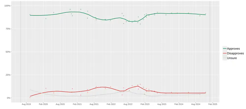 | Cid-Gallup | Sept 2024 | – | 89.0 | 4.0 | 7.0 | 85.0 | [8] | |