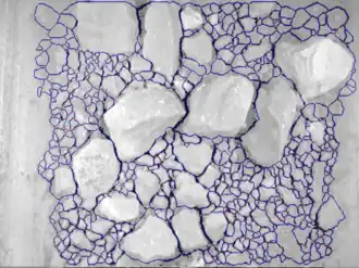 Optical granulometry is the process of measuring the different grain sizes in a granular material,[1] based on a photograph. Technology has been created to analyze a photograph and create statistics based on what the picture portrays. This information is vital in maintaining machinery in various trades worldwide. Mining companies can use optical granulometry to analyze inactive or moving rock to quantify the size of these fragments.[2] Forestry companies can zero in on wood chip sizes without stopping the production process, and minimize sizing errors.[3]