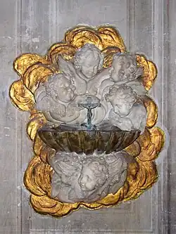 Also conserved are the seventeenth-century frescoes depicting the Life of Saint Francis Xavier, located in the atrium and executed by various artists on a design by Lazzaro Baldi (1624-1703),[5] while the main altarpiece dating from the eighteenth century is by Sebastiano Conca and depicts the Holy Trinity and Saint Francis Xavier.[11][12][13]
