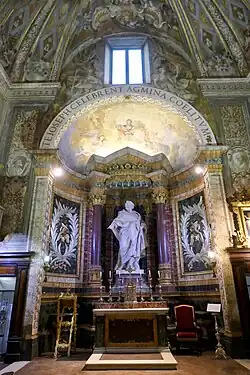 The oratory has a Presepe (1545) by Federico Brandani, and a bas-relief of a Madonna and Child by Domenico Roselli. Other decorations include paintings by Carlo Roncalli and sculptures of St Joseph by Giuseppe Lironi and a Madonna col Bambino (1730) by Maurizio Sparagnini. In the sacristy, some landscapes were painted by Alessio De Marchis.[1][2]