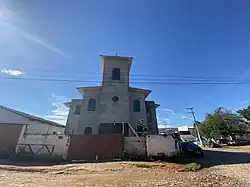 The reputation of the gold deposits on the margins of the Peixe River brought many adventurers to the Chapel of Rio do Peixe region who were responsible for building the Chapel of Saint Anne that, besides being the patron saint, was considered the owner of the place, showing the presence of Catholicism in a landscape where the houses or ranches were simple and small, made of wattle and daub technique, adobe, with a roof of buriti leaves with a ground floor, of one or two pitches and single storey.[22] The current one, the third one built, is located at the top of a square, a natural grassed elevated area, and has a facade with characteristics of the colonial period, formerly whitewashed and with turquoise blue frames, in a style that, at first, doesn't distinguish it from many others scattered throughout the recesses that sheltered populations in the Brazilian colonial period, and brings with it traits very characteristic of this period, such as having the local cemetery attached, being a great place of pilgrimage to the festivities celebrated there in July. In the mid-1980s, under the tutelage of the Goianésia Parish, the current temple underwent internal transformations, such as the removal of the original wood floor for a masonry and ceramic floor and lining with a plasterboard structure; two other rooms were added to the temple, one for the sacristy and the other to serve as the priests' dormitory during the festivities.[22]