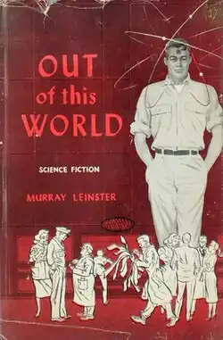 Out of This World is a collection of three related science fiction stories by Murray Leinster, published by Avalon Books in 1958. The stories, all featuring "hillbilly polymath" Bud Gregory,[1] originally appeared in Thrilling Wonder Stories over a four-month span in 1947, and are sometimes characterized as a novel.[2] A fourth story in the Gregory sequence, "The Seven Temporary Moons", was published in TWS in 1948, but has never been collected. All the stories originally carried the "William Fitzgerald" byline (a derivative of Leinster's birthname, William Fitzgerald Jenkins).[3]