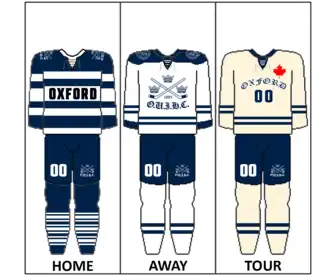 The Oxford University Ice Hockey Club (OUIHC) is home to the Men’s and Women’s Blues ice hockey teams of the University of Oxford, England. The Men's Blues, also known as Oxford University Blues,[2] is one of the world's oldest ice hockey teams.[3] Tradition places the origin of the team in 1885, when a match is said to have been played against Cambridge University Ice Hockey Club in St Moritz, Switzerland.[4] This date is recognised by the Hockey Hall of Fame, and prior to the 1985 Ice Hockey Varsity Match, the International Ice Hockey Federation formally recognised the 1885 game as the first ice hockey match played in Europe.[5] However, there is no contemporary evidence that this match took place, and Oxford now claims that this was a bandy match.[6]