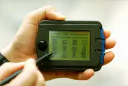 The PARCTab is an experimental mobile computing device as an early experiment in ubiquitous computing (UbiComp).[15] Its appearance resembles a personal digital assistant (PDA). Its functionality depends on the user's location, by receiving location-specific information via infrared sensors from gateway nodes installed in a particular location.[16]