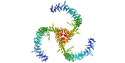 Piezo-type mechanosensitive ion channel component 2 is a protein that in humans is encoded by the PIEZO2 gene.[5] It has a homotrimeric structure, with three blades curving into a nano-dome, with a diameter of 28 nanometers.[6]