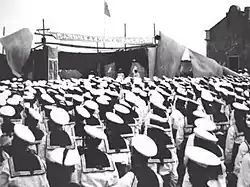 The present PLANMC was originally established in April 1953[4] to conduct amphibious operations against islands held by the Republic of China (Taiwan). By the end of the Korean War, the PLANMC numbered 110,000 personnel organized in eight divisions. However, the organization was disbanded in October 1957 when the leadership of China abandoned any plans to seize the island of Taiwan.[5] In 1979 the Central Military Commission (CMC) re-established the Marine Corps and organized it under the PLAN.[6]