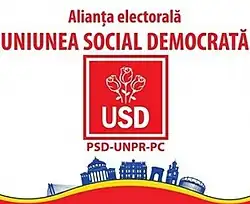 The PSD–UNPR–ALDE Alliance was a political alliance in Romania. It was initially established on 10 February 2014 as the Social Democratic Union between the Social Democratic Party (PSD), the National Union for the Progress of Romania (UNPR) and the Conservative Party (PC).[6] However, the name was rejected by the Permanent Electoral Bureau, because an alliance with an identical name existed in 1996, and the Democratic Liberal Party, that owned the copyright for the name, refused to grant it to the PSD.[7] On 7 March 2014, the PSD–UNPR–PC Alliance was registered.[8]