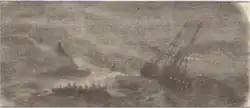 The Queen Victoria left Liverpool on the night of 14 February 1853 with cargo and approximately 100 passengers. As it approached the Irish coast at Howth it was hit by a snowstorm. It struck Howth Head around 2:00am on 15 February. The Captain backed the ship away from the Head in hopes of being able to navigate into the harbour. The damage to the ship was more extensive than the captain thought and it quickly began to fill with water. It drifted, dead in the water, and struck below the Baily Lighthouse. It sank within 15 minutes of the second hit, 100 yards south of the lighthouse. Approximately 83 passengers and crew perished, including the Captain. One lifeboat, with 17 passengers, made it to shore.[1]
