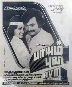 Paayum Puli (transl. Pouncing Tiger) is a 1983 Indian Tamil-language martial arts film[1] directed by S. P. Muthuraman, written by Panchu Arunachalam and produced by AVM Productions. The film, inspired from the 1978 film The 36th Chamber of Shaolin, stars Rajinikanth and Radha, alongside Jaishankar, Silk Smitha and R. N. Sudarshan, with K. Balaji making a cameo appearance. The music was composed by Ilaiyaraaja, while cinematography and editing were handled by Babu and R. Vittal respectively. Paayum Puli was released on 14 January 1983, coinciding with Pongal, and became a commercial success.
