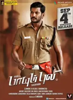 Vendhar Movies was later confirmed to bankroll the film whose production was scheduled to begin after the release of Vishal's Aambala (2015).[5] Talking about the film's concept, Suseenthiran said that "if someone offends a normal guy, he would definitely retaliate then think about a police officer, who gets affected and offended" forms the major crux of the film.[6] In March 2015, lyricist Vairamuthu confirmed Kaaval Kottam as the film's title and Madurai was chosen as the film's backdrop.[7] Shortly, the film's title was rechristened as Paayum Puli after the 1983 Tamil film of the same name.[8]