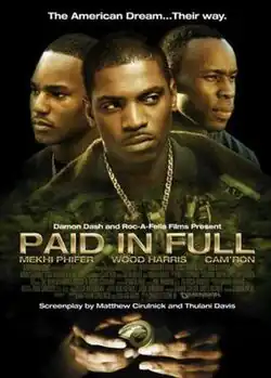 Paid in Full is a 2002 American crime drama film directed by Charles Stone III from a screenplay by Matthew Cirulnick and Thulani Davis. It stars Wood Harris, Mekhi Phifer and Cam'ron and is loosely based on the lives of drug dealers Azie Faison, Rich Porter, and Alpo Martinez. In the film, Ace (Harris) rises up in the Harlem drug trade while battling rivals conspiring to bring about his fall.