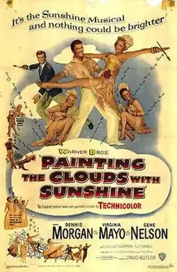 Painting the Clouds with Sunshine is a 1951 Technicolor musical film directed by David Butler and starring Dennis Morgan and Virginia Mayo (whose singing voice was dubbed by Bonnie Lou Williams). The film is a musical adaptation of the 1919 play The Gold Diggers by Avery Hopwood, the fourth film adaptation of the play following The Gold Diggers (1923), Gold Diggers of Broadway (1929) and Gold Diggers of 1933 (1933). The film is a jukebox musical, featuring popular songs from the 1910s to 1930s, including two songs from Gold Diggers of Broadway ("Painting the Clouds with Sunshine" and "Tiptoe Through the Tulips") and one song from Gold Diggers of 1933 ("We're in the Money").