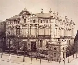 The Palacio del Marqués de Portugalete was a grand palace built in the 1860s, located at 56 Calle de Alcalá, on the corner of Calle Alfonso XI, in Madrid. Also known as the Palace of Bailén, it belonged to the family of Francisco Javier Castaños y Aragorri, a descendant of General Francisco Castaños, who was the victor at the Battle of Bailén. It was built by architect Adolfo Ombretch, who also built the nearby palace of Linares. For many years it was a venue for the wealthy elite to meet and discuss national politics. It was demolished after the Spanish Civil War, and in 1946, replaced by the National Institute of Forecast, now occupied by the National Institute of Health.[1]