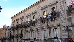 The Palazzo della Città is a late-Baroque-style palace, built as the mayor's offices, is located on piazza Duomo, across from the Acireale Cathedral, in the city of Acireale, region of Sicily, Italy.