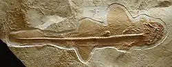 | Palaeocarcharias[5] | P. stromeri | Eichstätt, Kelheim, Solnhofen | Altmühltal Formation | Several complete specimens | One of the oldest known lamniiformes, though more reminiscent in appearance to modern carpet sharks |