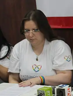 Pamela Karina Troya Báez (born 1982) is an Ecuadorian LGBT rights activist and communications manager, known for starting the campaign to legalise same-sex marriage in Ecuador.[1][2][3][4][5] In the political sphere, she ran as a candidate to the Ecuadorian National Assembly and to the Council of Citizen Participation and Social Control. [6]