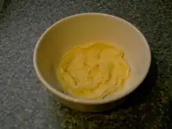 Pantāga (pantāgs, pentogs)[1] is a traditional Latvian dish, containing eggs and spices. It symbolically represents the sun as is prepared during Ūsiņš Day, and often at Easter.[2] Occasionally pantāgs was also used for sacrifice rituals and holy sites in Latvian pre-Christian rituals.[3] It is often baked on an open flame outdoor fireplace or fire, usually in a round cast iron long stem pan. The egg whites and yolks are beaten in a pan with spices, producing a form of scrambled egg. However, it is also common to place it in a microwave.