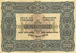 10000 korona | 211 × 144 mm | "PATRONA HUNGARIAE" | |||